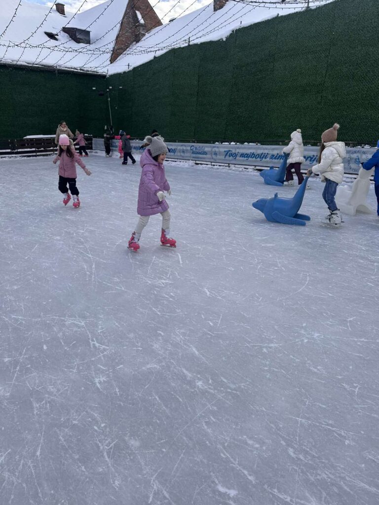 Prošli tjedan nekoliko naših skupina zaputilo se na klizanje i doživjelo pravu zimsku avanturu. ⛸️❄️ Led je brzo postao mjesto veselja, učenja i druženja. Bilo je tu ponešto nesigurnih koraka, pokoji simpatični pad i čak nekoliko hrabrih pirueta, ali najviše od svega – smijeha koji je odzvanjao cijelim klizalištem. Djeca su se međusobno bodrila, pomagala jedna drugima i s velikim ponosom pokazivala svaki novi uspjeh. Tjedan je prošao u odličnoj atmosferi, a djeca su stalno ponavljala „Koja uživancija!“. 🥰