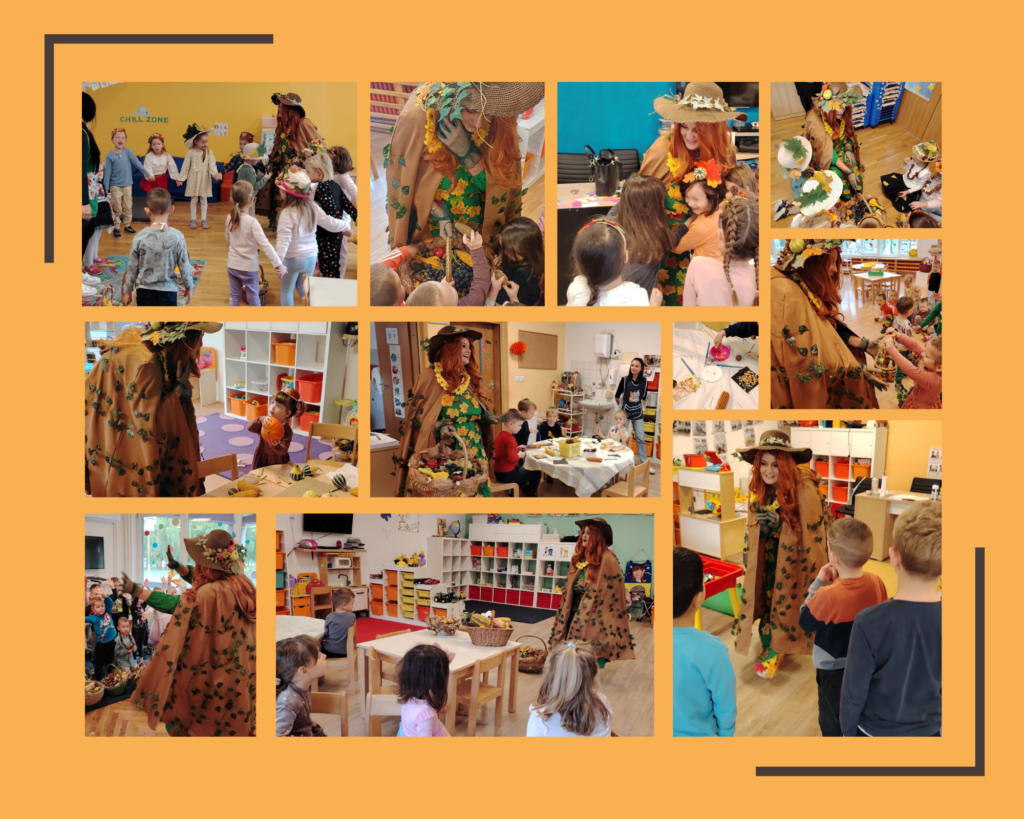 Ispričala je djeci kako putuje kroz šume i livade 🌄, boji lišće 🖌️i priprema prirodu za zimu 🌬️. Djeca su uzbuđeno slušala njezine priče, a potom i sama ispričala što su sve primijetila da se u prirodi događa u jesen. Zajedno su nabrajali jesenske plodove, a neke su imali prilike odmah i kušati iz košare tete Jesenke. Nekoliko skupina odlučilo je tetu Jesenku potražiti u parku 🌳🍂🍄. Šetali su stazama i dozivali ju. Nisu mogli sakriti oduševljenje kada su ju napokon pronašli. Zajedno su zapjevali i zaplesali na ritmove jesenskih pjesmica. 🎵🍁