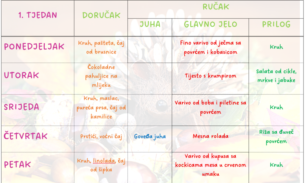 🍏Jelovnik za razdoblje od 29.09. do 03.10.2025. godine🍏